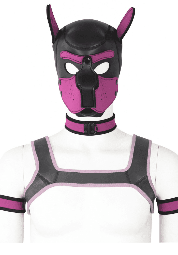 De set bevat een stevige collar (halsband) die naadloos aansluit op het borststuk. Dit borststuk is niet alleen esthetisch indrukwekkend, maar ook functioneel: het is het perfecte punt om vast te houden tijdens penetratie, waardoor de Dominant volledige controle heeft over de bewegingen van de pup.